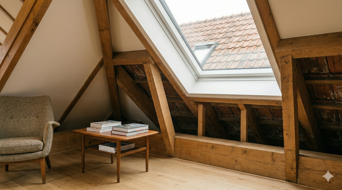 L’installation de fenêtres de toit Velux équipées de volets roulants solaires permet de réguler la lumière naturelle et la température intérieure, tout en favorisant les économies d’énergie. Pour garantir la solidité de la structure lors de la création des ouvertures, un chevêtre de charpente a été soigneusement intégré. Toutes ces solutions s’inscrivent dans une démarche écologique, tout en maximisant le confort et la valeur du bien.